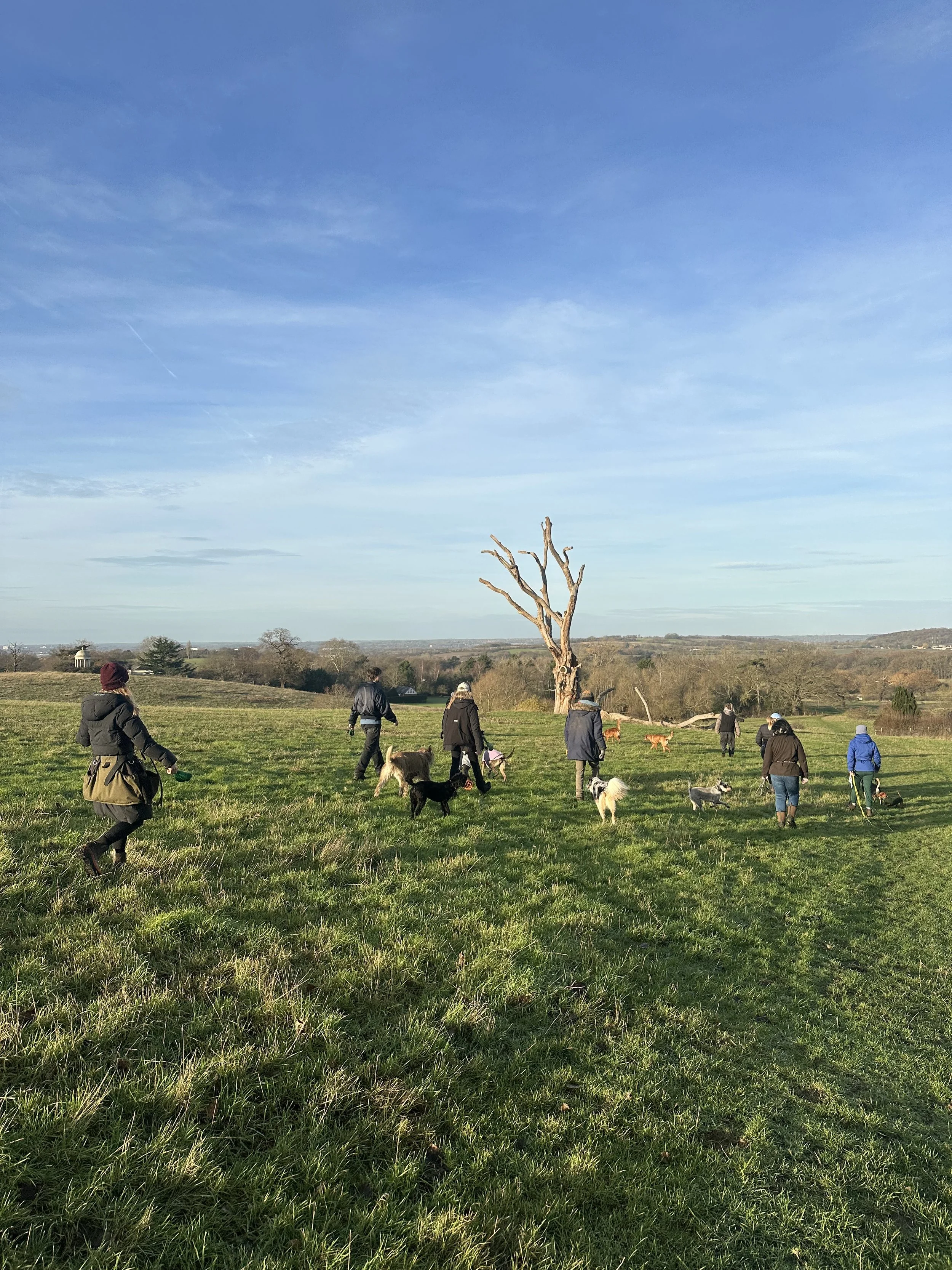 I offer 1:1 dog walking, paired walks and carefully curated small group walks, as well as individual and group dog training.
